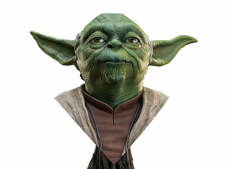 Judge it by its size, will you? The legendary Jedi master Yoda is now the latest Legend in 3D. Measuring approximately 9″ tall, this 1/2 scale resin bust depicts the Jedi as he appeared in The Empire Strikes Back and sits atop a replica of his Dagobah home. Limited to only 1,000 pieces, it comes packaged in a full-color box with a numbered certificate of authenticity. Designed by Joe Allard; sculpted by Joe Menna.