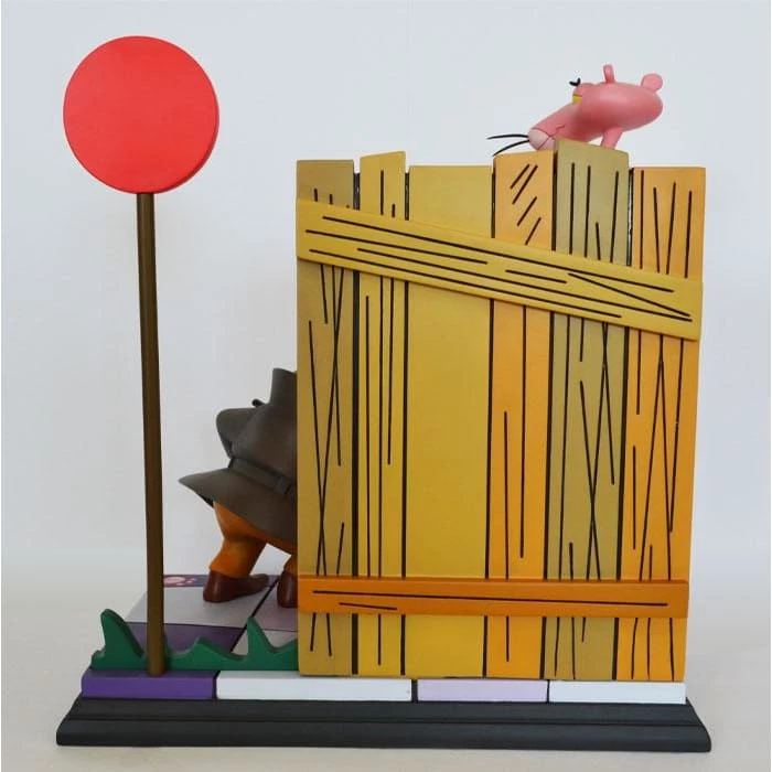 Standing 16โ tall, this beautifully detailed piece captures the Pink Panther perfectly, as he has once again outwitted the Inspector!