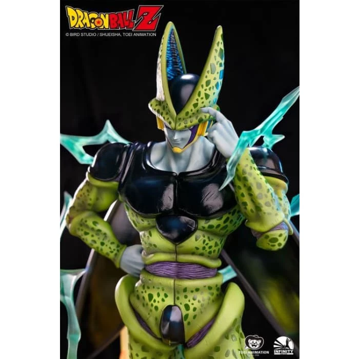This statue features the popular villain from βDragon Ball Zβ-Cell! With a huge size of 1/4 scale, this statue rcreates the original characterβs Perfect form. The overall painting is delicate and the colors are accurately captured. Surrounded by transparent lightning gadgets, Cell is standing on the podium equipped with bottom-up gradient color special effects gadgets. With the always-on built-in light, the villain Cell is contrasted to feature incredible power and unmatched confidence.