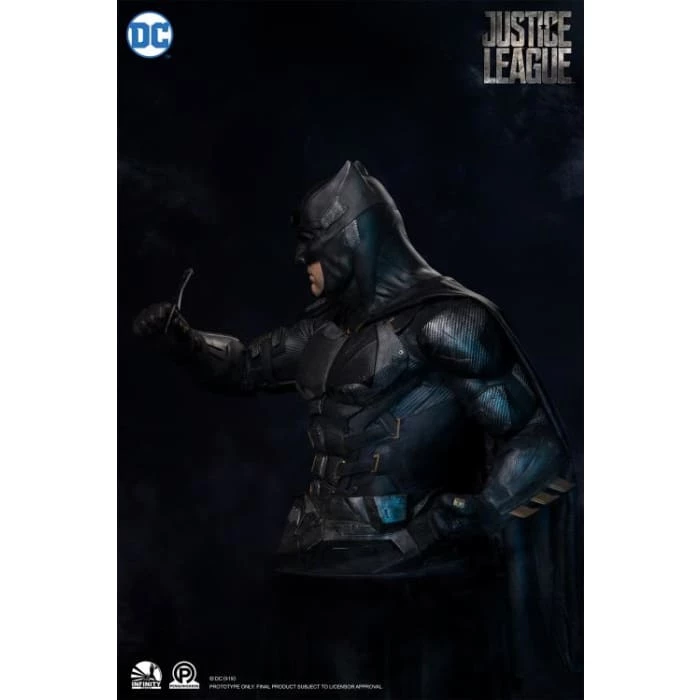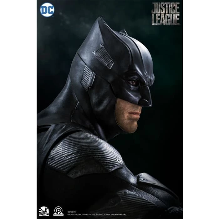 Batman, the Dark Knight of Gotham, from the Justice League film, has been frozen in time with an impressively sculpted bust by Infinity Studio. Sitting over 37 inches tall, Batman is posed with a batarang atop a Justice League base.