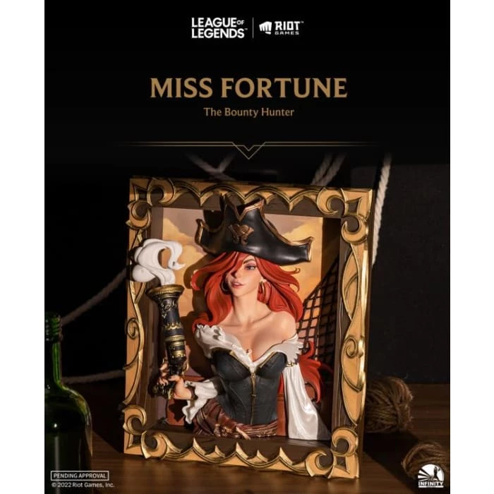 The border pattern of the frame as well as the details of the character is so delicately molded, highlighting the power and image of Miss Fortune’s capability to have everything under control.