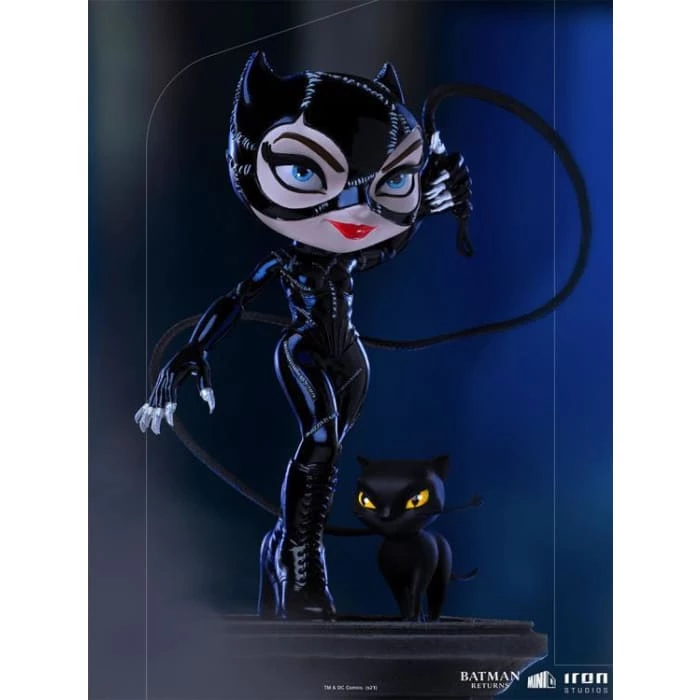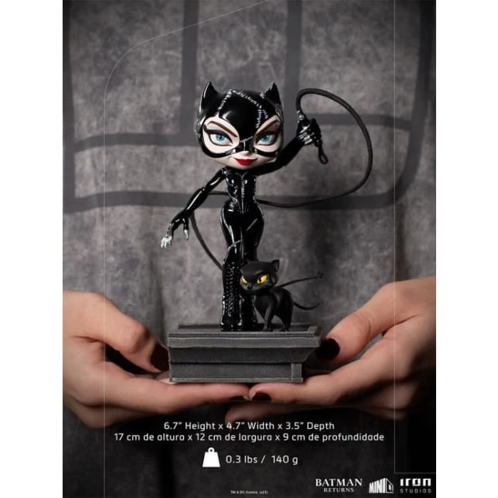 Iron Studios brings to its MiniCo line of stylized figures, the beloved villain and anti-heroine Catwoman. The figure is inspired by the character from the movie Batman Returns (1992), directed by Tim Burton, one of his most popular and unforgettable adaptations. The feline villain, played by the beautiful Michelle Pfeiffer, is now featured in the amazing Catwoman figure.