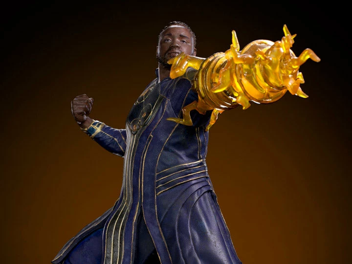 With a vortex of cosmic energy emerging from his arm, although he prefers to use his huge ingenious intellect to combat his enemies, he can also be an efficient and capable fighter when armed with his powerful rings of force. His creative mind helped him to boost humanity in technology, but he has always kept his brilliant mind hidden in the shadows as the creator of innovations such as the plow and the steam machine. Dressed in purple and silver armor to fight the Deviants, Iron Studios present the Phastos statue, with the most intelligent member of the Eternalsโ team of thinkers.