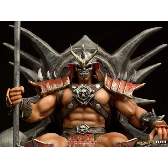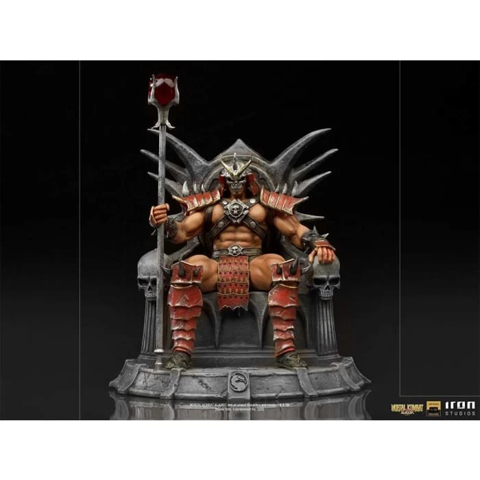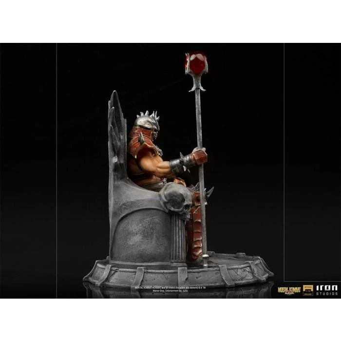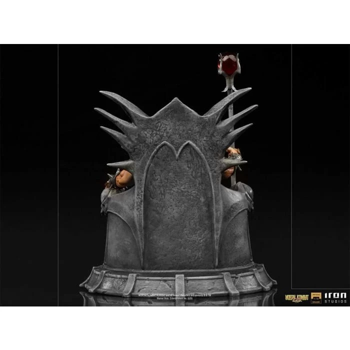 Present in his ancestral palace in the devastated kingdom of Outworld, an ancient extradimensional world ruled by chaos through his hands, the fearsome Emperor Shao Kahn reigns absolute on his throne. Wielding his staff with one of his powerful fists, while resting the other on the skull-adorned armrest of his rock-carved throne, with his face hidden by his skull-shaped helmet, the powerful world-conquering giant of one of the most popular fighting tournament games, wins its long awaited version in theย Mortal Kombat line of statues from Iron Studios, inspired by Mortal Kombat II, second game of series.