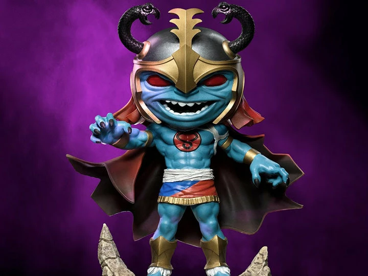 Mumm-Ra gets a Toy Art MiniCo by Iron Studios! In the form known as the โEver-Livingโ, the evil sorcerer with an ominous smile on his face, points his right hand as if heโs ready to cast energy bolts from his fingers, against his great archenemies, the ThunderCats, or to punish his often-clumsy minions, the Mutants. The iconic villain from the 1980s gets a stylized Toy Art version. Mumm-Ra stands on a pedestal that refers to his altar in the interior of the Black Pyramid.