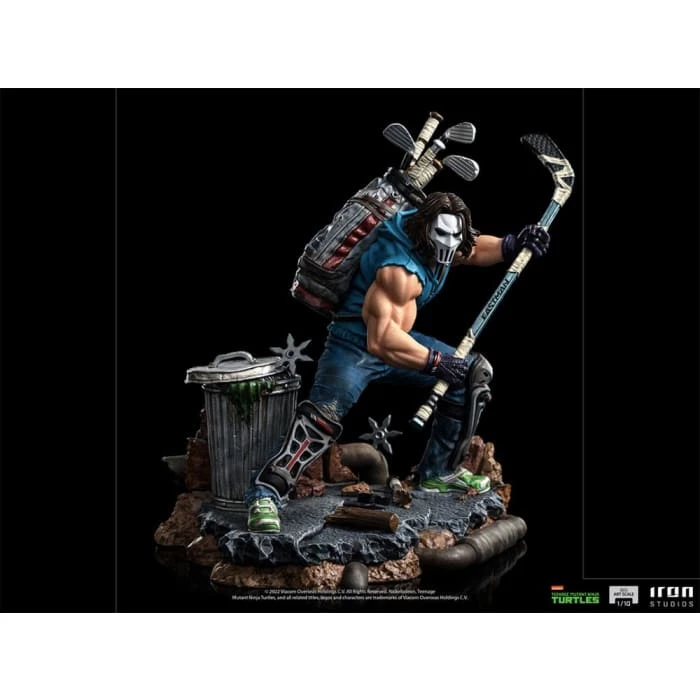Based on the classic Teenage Mutant Ninja Turtles characters, Casey Jones joins the Battle Diorama Series! He is depicted with his signature Eastman hockey stick in hand and golf bag full of weapons on his back while patrolling the streets of New York City.
