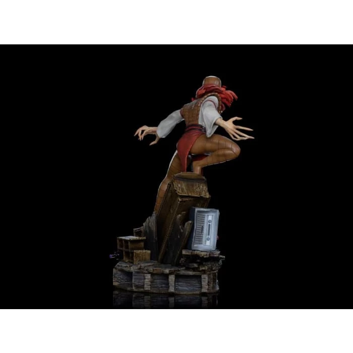 Climbing on a pile of old furniture from the demolished Mansion X, the relentless mutant warrior stands for combat. With ferocious eyes and a keen smile on her face, she opens her arms, exposing her hands with big Adamantium claws for fingers, a result of cybernetic enhancements to make her even more deadly and efficient. Adding to the line that compose the diorama of the X-Men against Magneto dominating the giant Sentinel robots and a horde of mutant villains by his side, Iron Studios present their statue “Lady Deathstrike – X-Men – BDS Art Scale 1/10″ with the murderous mutant, mercenary and assassin cyborg.