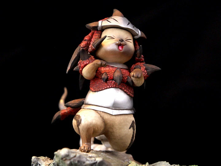 Palicoes are Felynes that have created a pact with hunters to support them in battle. During quests, they will assist you in many ways, like attacking monsters or gathering materials. each hunter has their own individual Palilco. This 1/10 scale Palico statue stands at just over 5.50 inches tall and is made of polyresin.