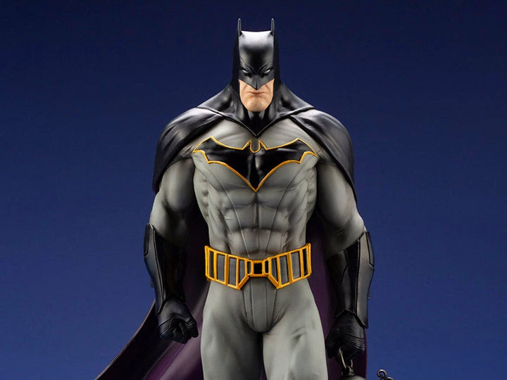 The included pedestal has a metal plate with the Batman chest logo on it, allowing it to be displayed immediately out of the box.