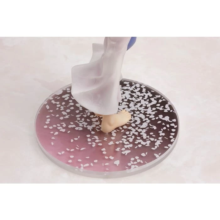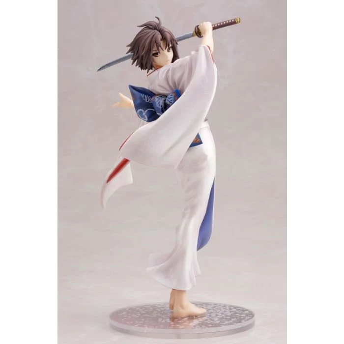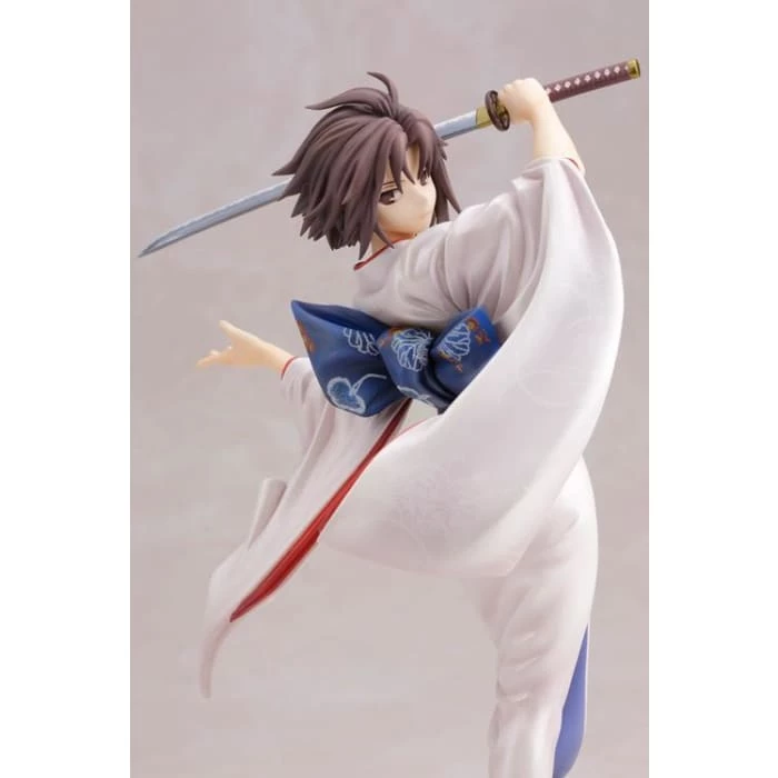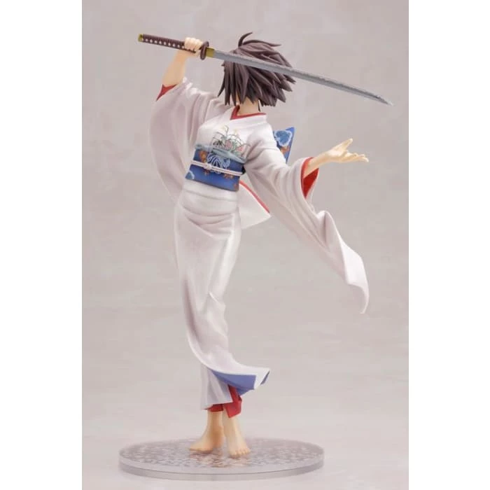 The girl with the Mystic Eyes of Death Perceptionis frozen in a sweeping gesture as she whips her deadly katana at an opponent, her body twisting around with the weapon held up near her head. Shiki’s beautiful white kimono with detailed decoration flows gracefully around her as she spins, its intricate sculpt appearing just like real clothing and imbuing the presentation with a powerful element of motion.