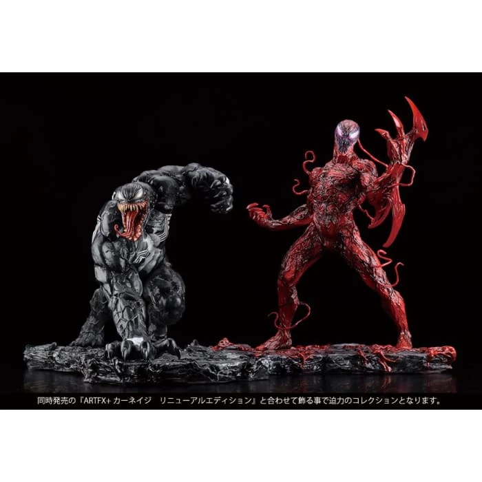 Appearing in countless comic and film adaptations an updated version of Venom is joining the ARTFX+ line. This life-like statue of the symbiote is shown striking the ground forcefully. The Renewal Edition of the ARTFX+ Venom statue features an updated base and head with an even more malicious expression on his face. The statue’s painting has also been updated! Display Venom together with the Carnage Renewal Edition ARTFX+ statue (sold separately) for an even more dynamic display.