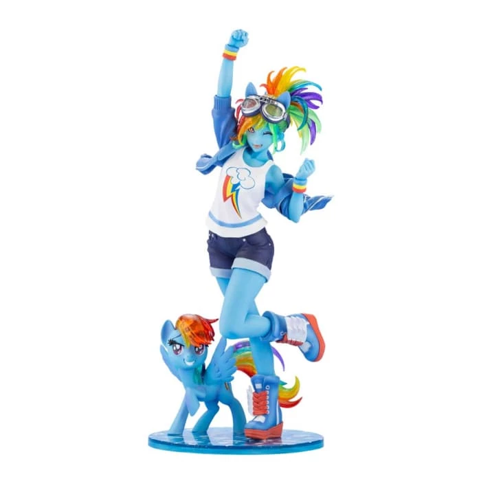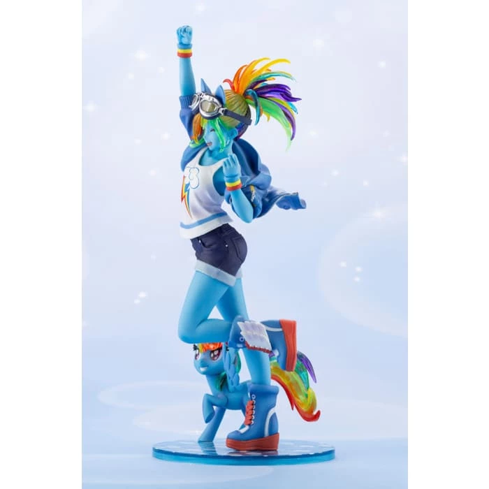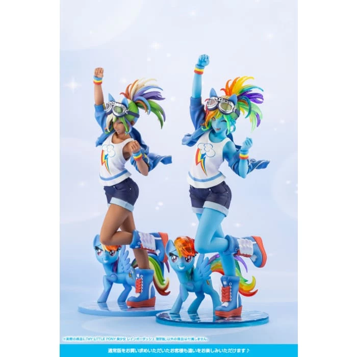The Officially Licensed MY LITTLE PONY BISHOUJO series is now back in an all-new limited edition color variant! Next in the lineup is Rainbow Dash! Rainbow Dash’s hair and base is now made of clear plastic material full of glitter all over! Her sparkling presence comes across even more clearly! The candy-like look and texture of this figure make it seem like she might be giving off a sweet scent. Fans will not be able to keep their eyes off this statue! The skin tone now matches her appearance in “My Little Pony: Equestrian Girls”! The packaging for this figure has also been upgraded with a hologram design to add a completely different finish from the regular Rainbow Dash BISHOUJO for fans to enjoy. Be sure to add these special ponies to your collection!