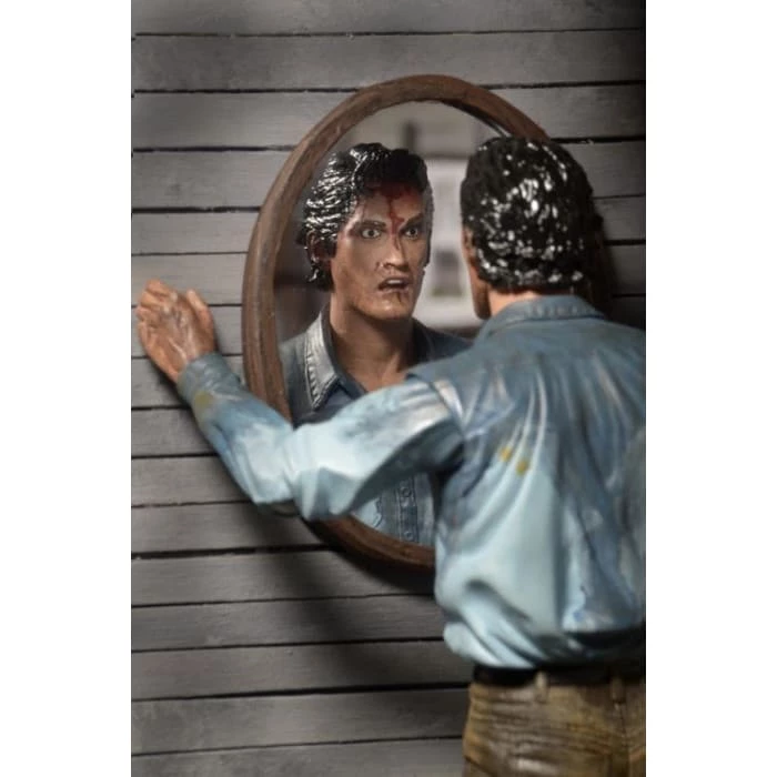 Ultimate Ash features all new fully articulated legs and tons of accessories, including 2 interchangeable heads (regular and possessed sculpts), interchangeable right forearms, severed possessed hand, Sheila head, Necronomicon, tape recording machine, shotgun and axe accessories.