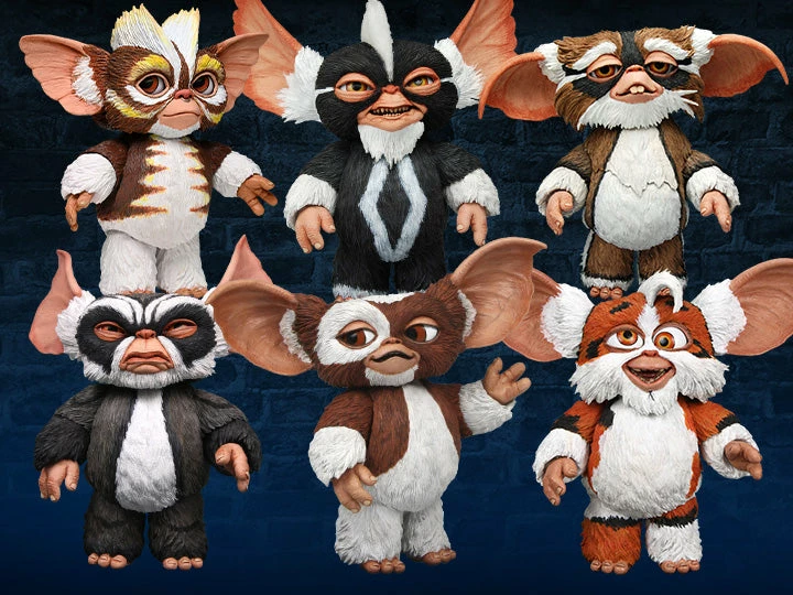 Figures stand approximately 4″ tall (in scale with 7″ figures). To celebrate the return of these mischievous creatures, the packaging has been updated to pay tribute to the classic trading cards.
