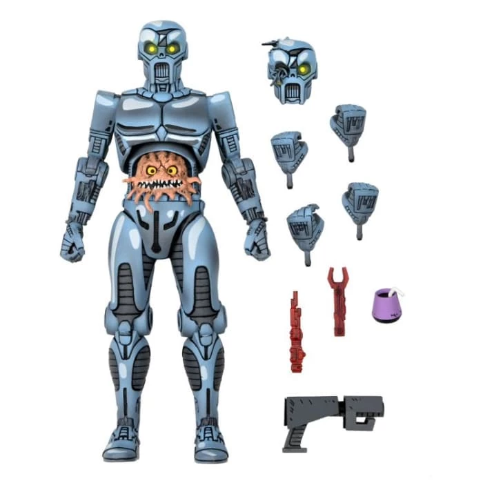 This 7″ scale exoskeleton has a removable Utrom and includes interchangeable heads and hands, blaster, tools, and… is that a sippy cup? Hey, even tentacled aliens have to stay hydrated.
