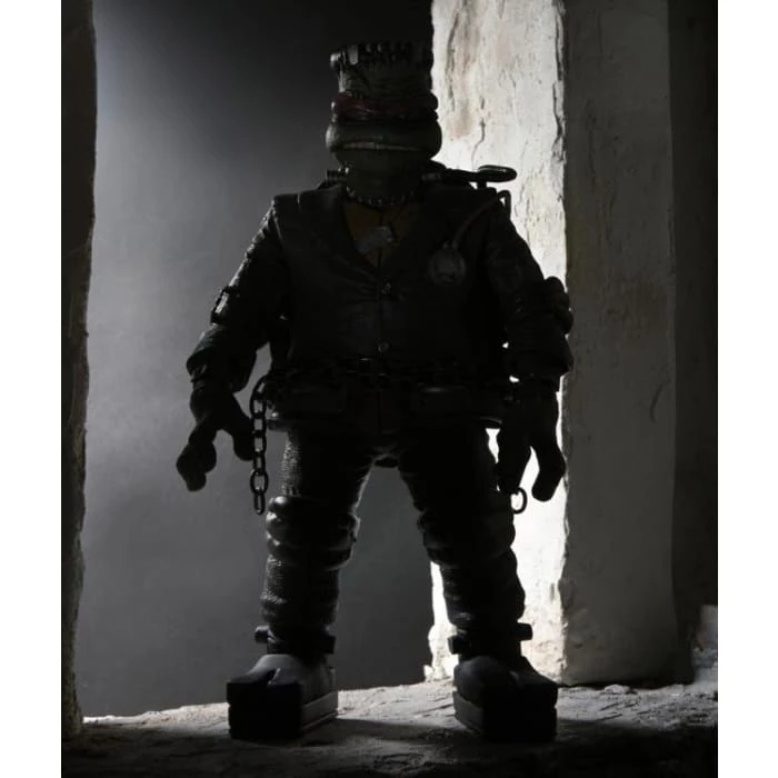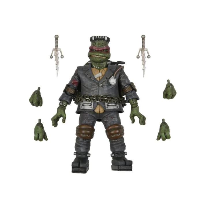 The line will pay tribute to the worldโs most famous turtles and Universalโs icons of horror. Inspired by the silver-screen classic Frankenstein, celebrating its 90th anniversary in 2021, Raphael as Frankensteinโs Monster reimagines the temperamental Turtle as the misunderstood monster. Includes metal chain, interchangeable hands, and two lightning bolt sai.