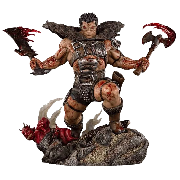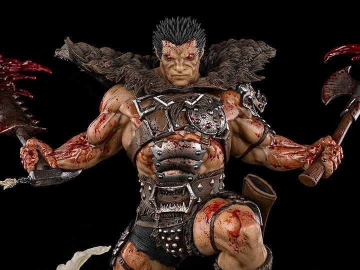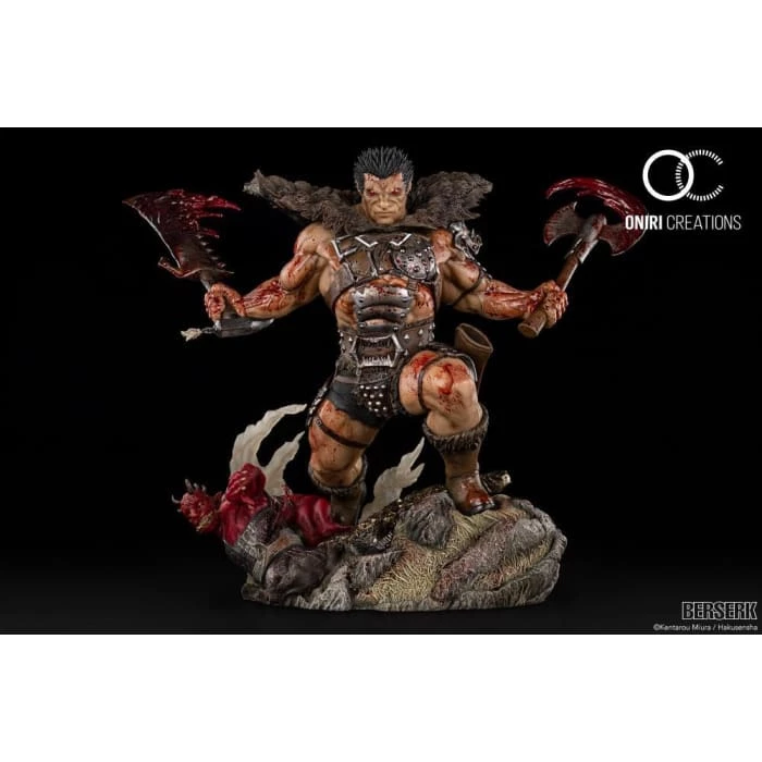From Oniri Creations, based on the popular manga Berserk, this limited edition statue features Zodd the Immortal in human form wearing a suit of armor never before produced in statue form. This fourth statue in the Berserk line features Zodd letting his power speak for itself while facing off with the Kushan troop of soldiers, the Daka.ย