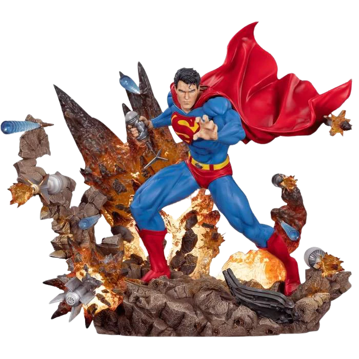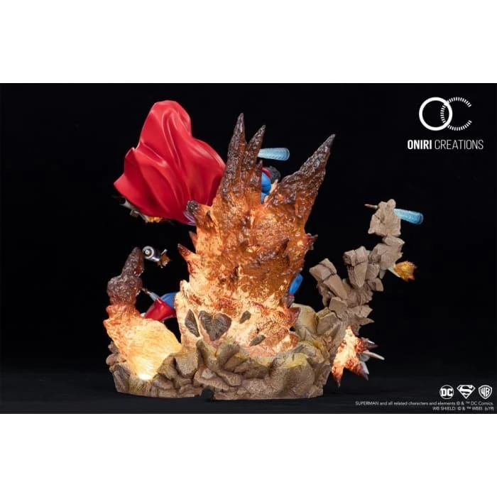 From Oniri Creations, the Superman: For Tomorrow statue is based on the cover art of Superman #205. Standing over 13 inches tall, Superman is depicted defending himself against a full-on attack of bullets and rockets. Superman stands atop a highly detailed base of destruction and debris and features semi-translucent flames.