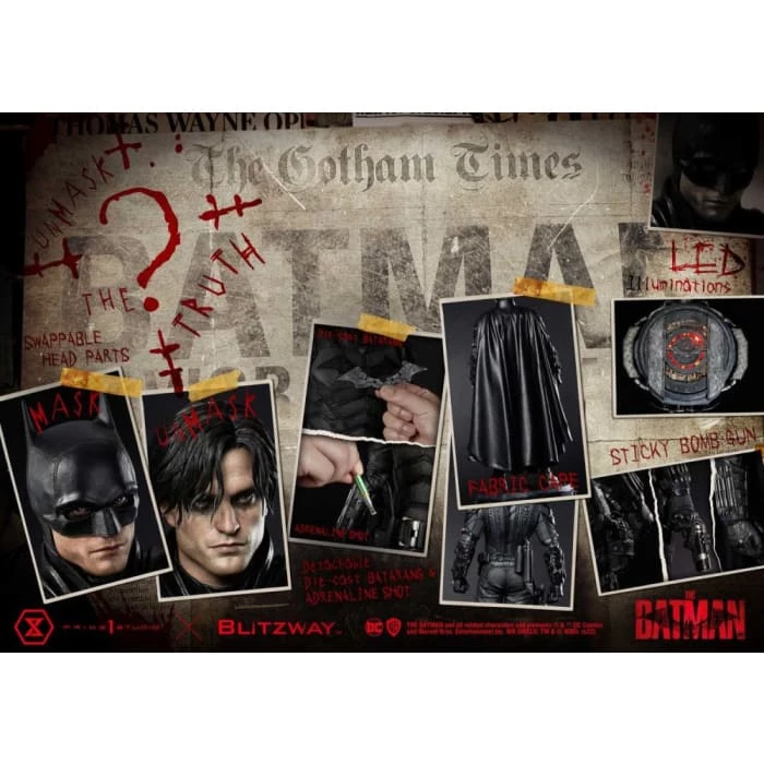 The gritty and exciting film has finally hit theaters and continues to garner rave reviews! True fans of the blockbuster Matt Reeves masterpiece need not go anywhere else for the most definitive and best interpretation of Bruce Wayne, also known as The Batman! Blitzwayโs incredible artisans have brought their finest sculptors and most accomplished painters to bring Robert Pattinsonโs turn as the Caped Crusader to vivid life!
