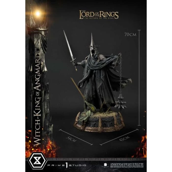 At a towering 28 inches tall, Prime 1 Studio artisans have rendered the immortal Lord of the Nazgûl, at his most triumphant moment. No one knows who the fabled Númenórean sorcerer king was before being corrupted by a Ring of Power, but all know that he became the most powerful of all of Lord Sauron’s Ringwraiths: The Witch-King of Angmar!