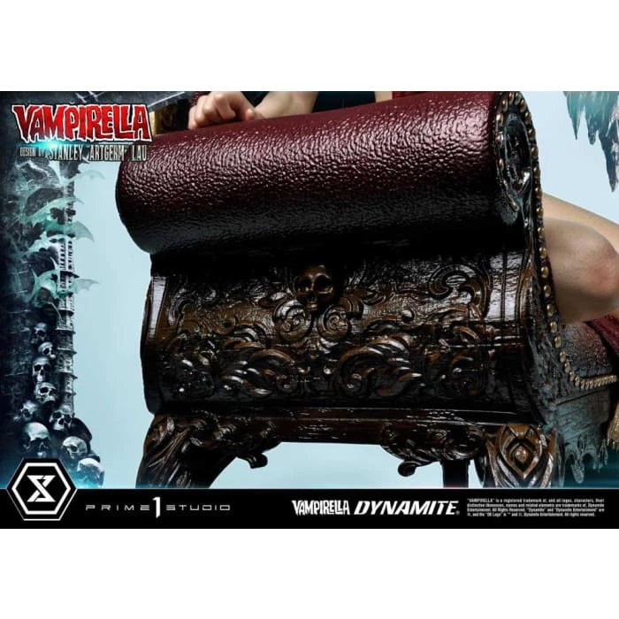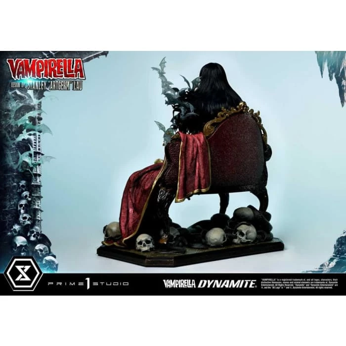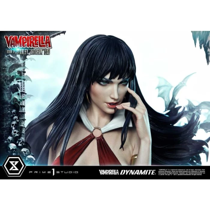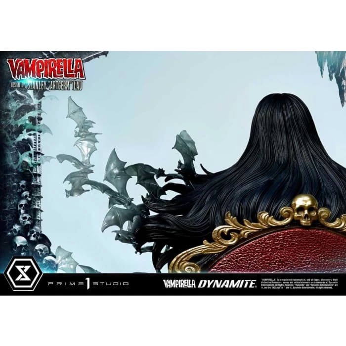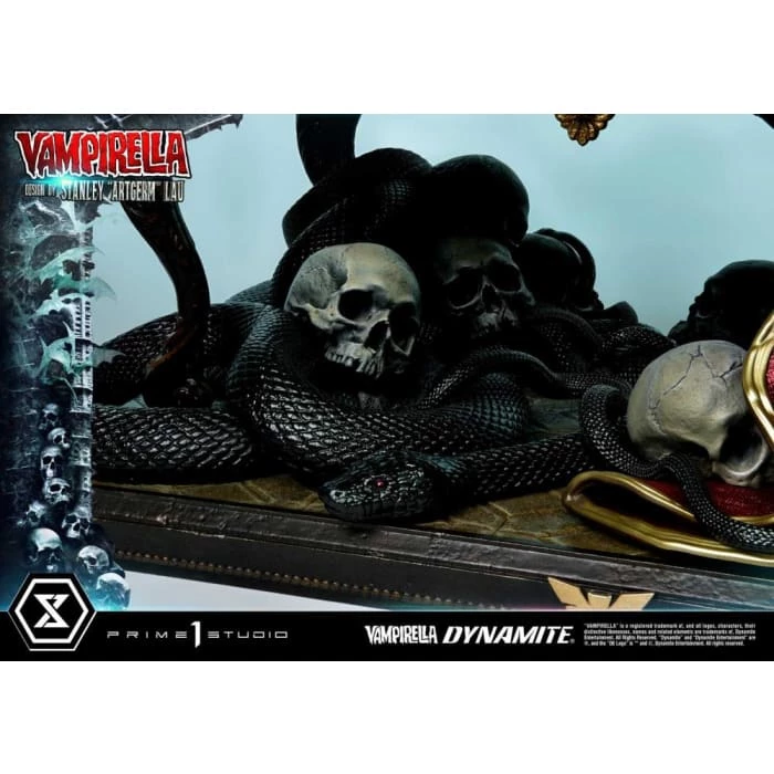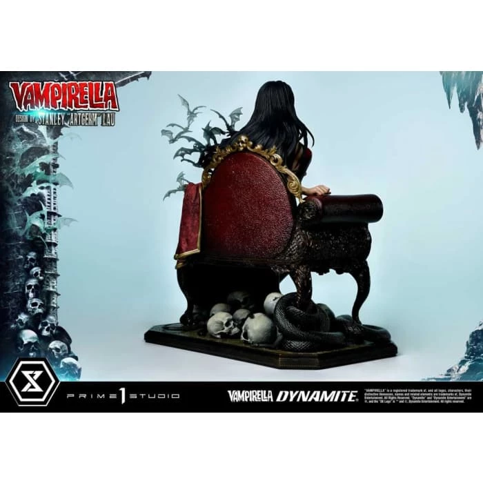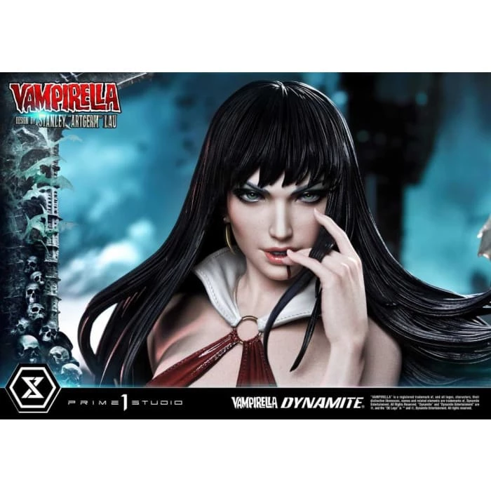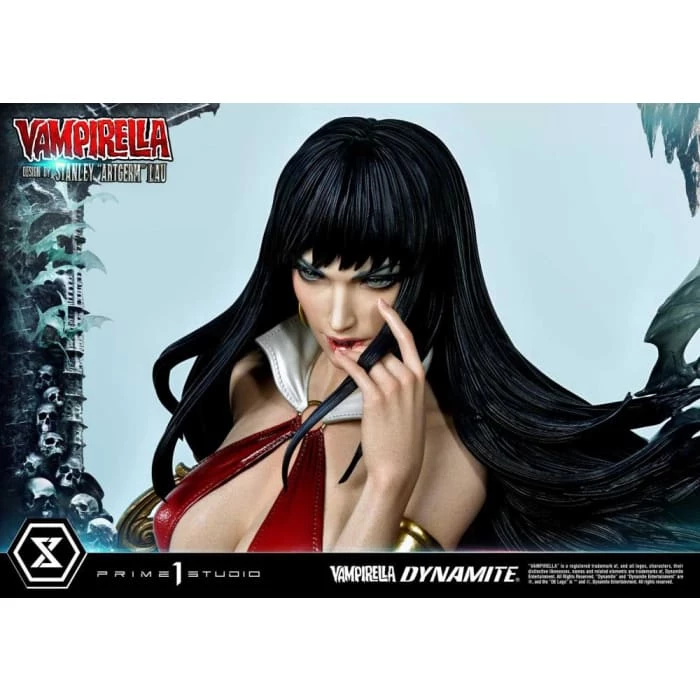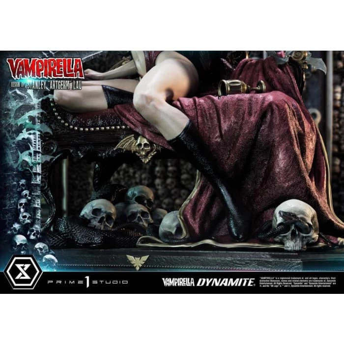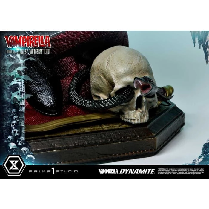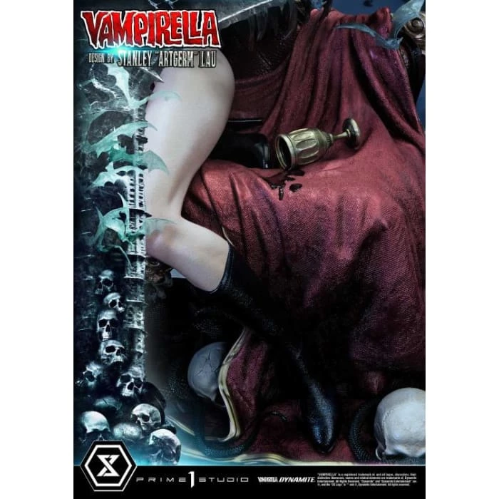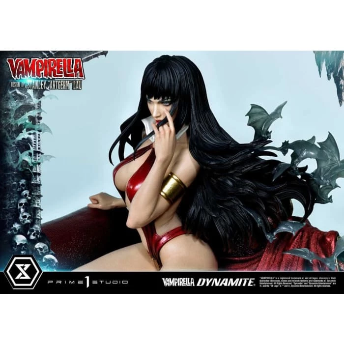 Hot from the pages of Dynamiteβs thrilling monthly comic, VAMPIRELLA comes to you from the fantastic mind of Stanley Lau and the impressive artistry of Prime 1 Studio! Based on Vampirella No. 6βs famous Artgerm cover, Prime 1 Studioβs 22-inch tall Vampirella statue carries on with the theme of Vampi unwinding by herself on a finely appointed chaise lounge base, adorned with the familiars and accessories of her world.