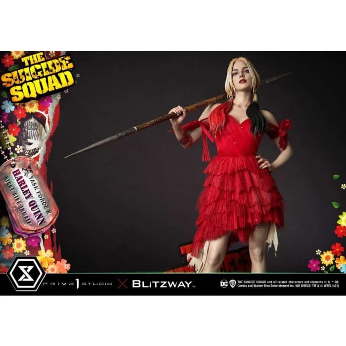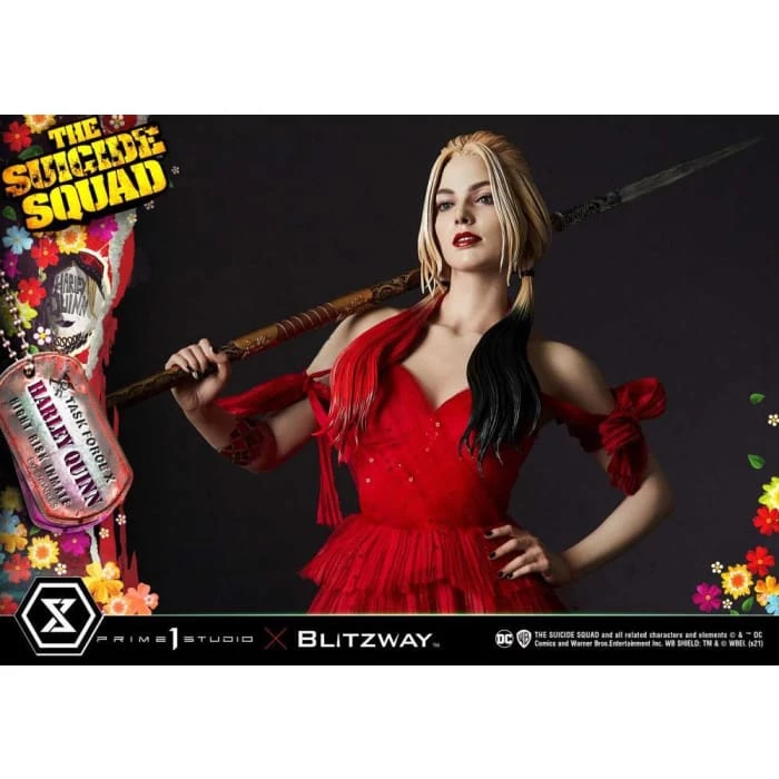 Standing at 27.8 inches tall, Harley Quinn is both ravishing and lethal in this newest release from Prime 1 Studio. In collaboration with Blitzway, Prime 1 Studio has revealed our version of Harley Quinn from the highly successful movie. As shown in the movie, sheโs portrayed wearing the beautiful, red dress gifted to her by the President of Corto Maltese.