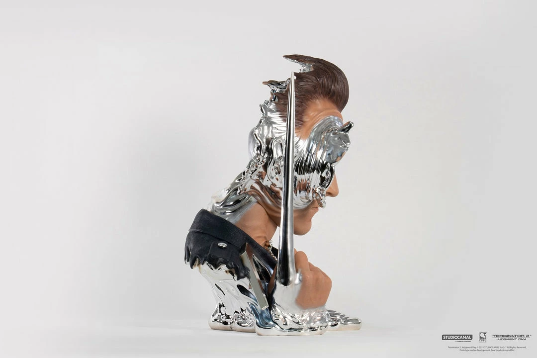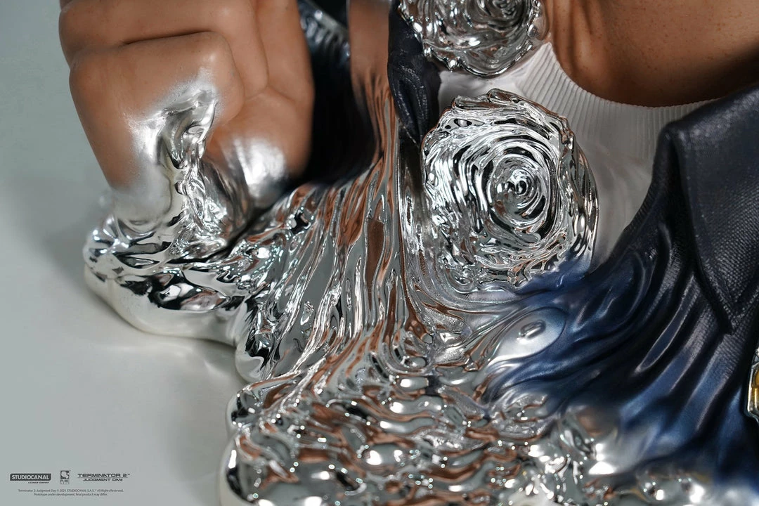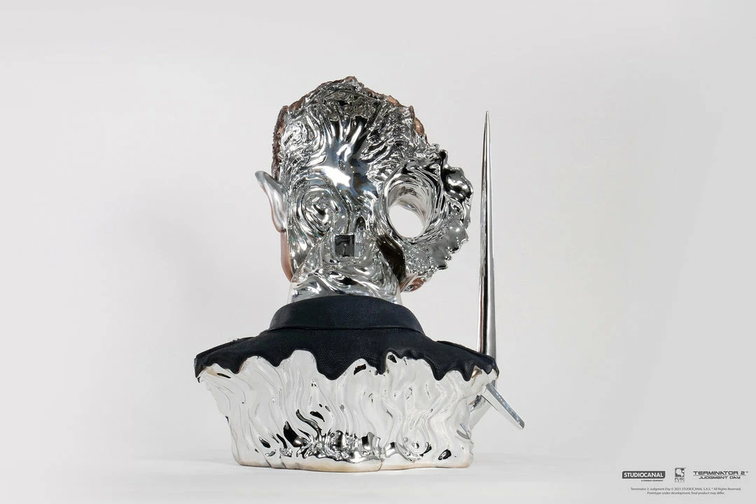 Featuring a liquid molecular brain, the ability to shape-change and mimic objects and beings of similar size, Skynet’s T-1000 is the ultimate killing machine. This highly detailed Art Mask shows the silent killer portrayed by famous actor Robert Patrick in his police uniform at the key moment when bullets and a shotgun blast reveal the horrifying reality of this unstoppable machine.