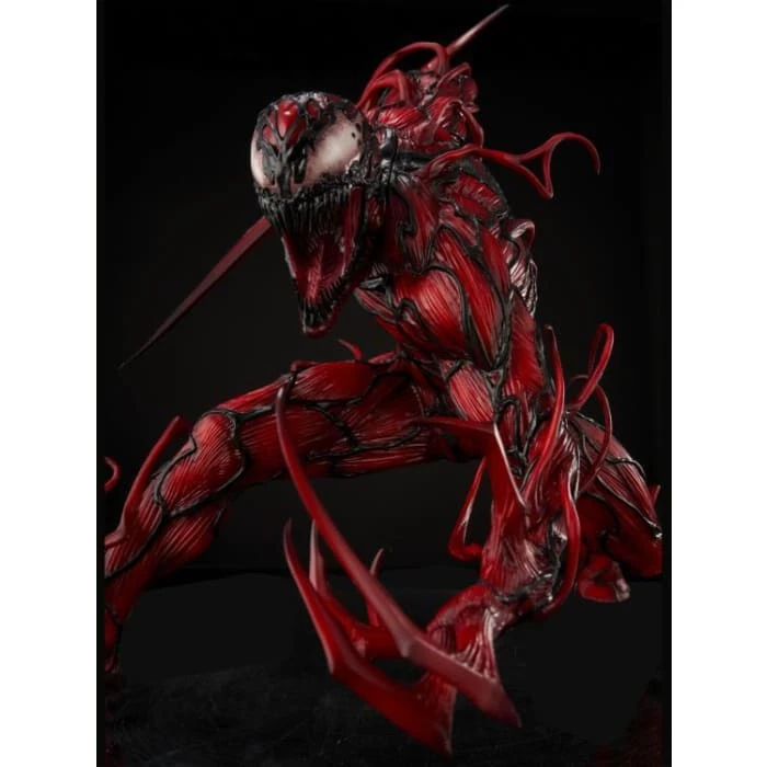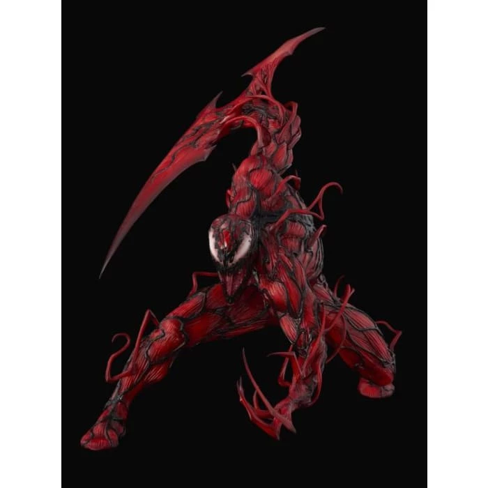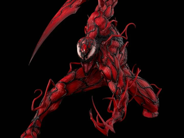 The terrifying serial killer and symbiote Carnage joins the Sentinel Sofbinal line of high-end soft vinyl statues! The evil villain features a high level of detailed sculpting, like the texture of his skin, his sharp bladed hand, and his creepy eyes.
