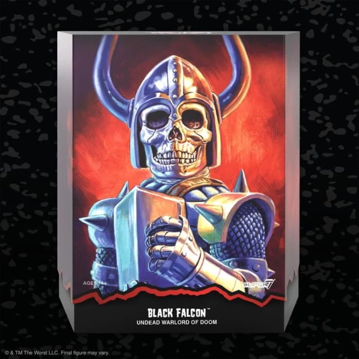 Black Falcon, the Undead Warlord of Doom, joins the ULTIMATES! World with this made-to-order 7” scale fully articulated ULTIMATES! Figure. The Worst is Super7’s own gang of the most villainous vile vermin, and Black Falcon is one of… The Worst! Black Falcon returns to defile the world of the living with multiple interchangeable heads & hands and a variety of accessories