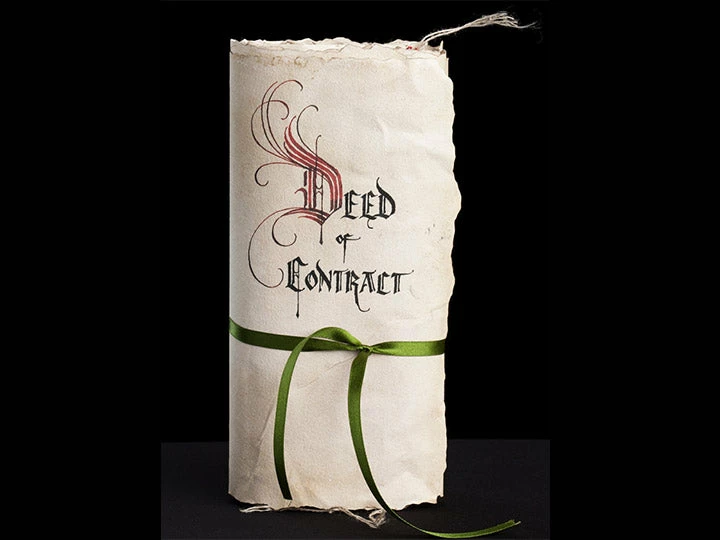 Weta is excited to present this one-of-a-kind The Contract of Bilbo Baggins replica! The Contract has been printed on high quality watercolour which shows off the beautiful caligraphy and texture. Too add on to the amazing details of this contract each page is hand-stitched together and then fastened with thread and wax seals. This Contract is a unique must-have for any Hobbit collector!