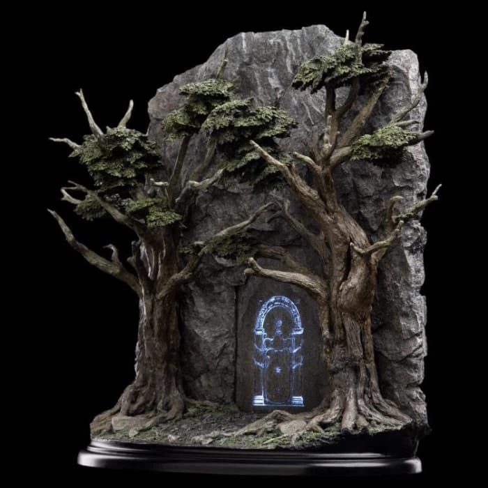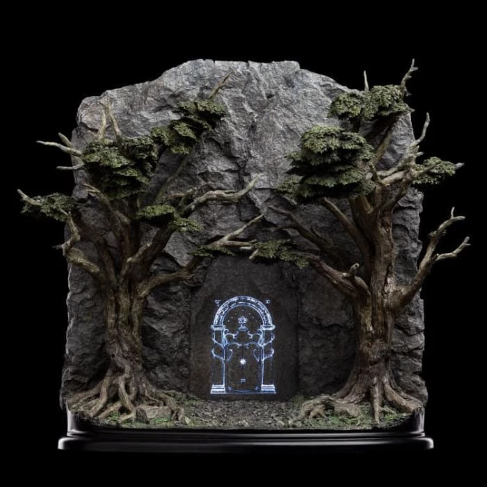 So, it was when the Fellowship came to the Cliffs of Celebdil that they found the Doors closed and surrounded by decay. Even the once beautiful holly trees flanking the entranceway were deathly and pale, their roots drowned by a sickly black pool gathered before the gate. From beneath the murk, unfriendly eyes watched the companions as they paused and sought a way within.