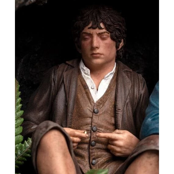 This scene was filmed not far from Weta Workshop, atop the hills of Mt. Victoria in Wellington, New Zealand, and although the original artificial tree has long since gone, the sense of depth in the surrounding wilderness remains. Along with references to original props, costumes and designs, this unique access to the location itself allowed these two artists to recreate every minute detail of this moment. From the flora and fauna of the environment to the colours and textures of the costumes; even the micro expressions of the characters. Every single leaf, every single hair and branch, placed with the utmost care and precision.